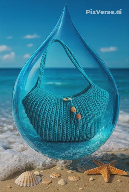 Mit ihrer intensiven, türkisfarbenen Nuance erinnert sie an klares Meerwasser, während das markante Häkelmuster ihr eine besondere Tiefe und Struktur verleiht. Jede Schlaufe, jede Masche sitzt perfekt – liebevoll von Hand gefertigt, robust und gleichzeitig wunderbar weich.